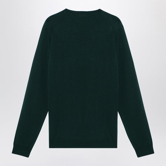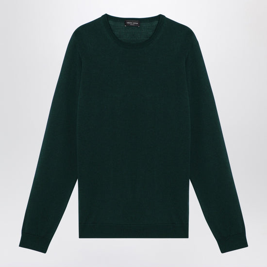 Crew-neck sweater by Roberto Collina in bottle green-coloured merino wool, featuring ribbed collar, cuffs and hem and regular fit. Size and Fit - Model wears size 48 IT Model measurements: Height: 188 cm Chest: 100 cm Waist: 76 cm Hips: 96 cm