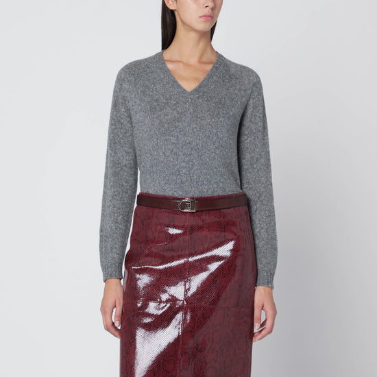Roberto Collina''s gray merino wool sweater, characterized by a V-neck, ribbed cuffs, and hem. Size and Fit - Model wears size S Model measurements: Height: 178 cm Chest: 83 cm Waist: 63 cm Hips: 91 cm