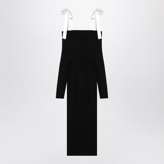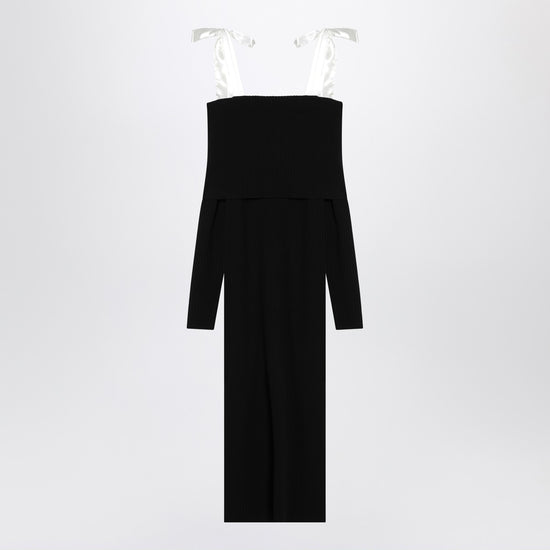Black viscose blend midi dress from Rotate featuring contrasting bow straps, long sleeves, a ribbed design and a slim fit. Size and Fit - Model wears size 36 DK Model measurements: Height: 179 cm Chest: 82 cm Waist: 65 cm Hips: 90 cm