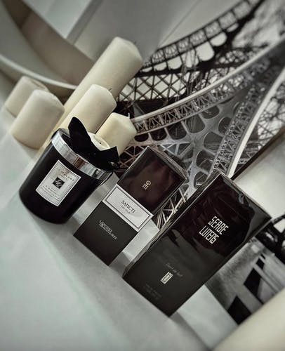 Sancti opens with a refreshing blend of bergamot, mandarin, grapefruit, and cypress, creating a bright and invigorating introduction. The heart reveals a complex mix of fir balsam, lavender, rosemary, cardamom, and coriander, adding an aromatic and slightly spicy depth to the composition. The base features cedarwood, amber, vetiver, patchouli, incense, myrrh, benzoin, cistus, and musk, providing a warm, resinous, and slightly smoky foundation. This fragrance belongs to the Oriental Fougere family, characterized by its fresh, aromatic, and ambery scent profile.