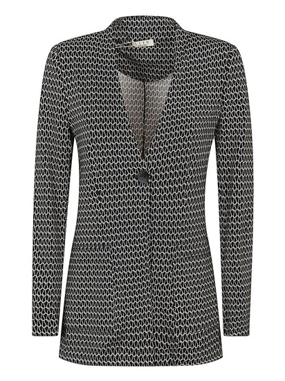 Jacket made of viscose with all-over multicolor print, V-neck, front button closure, two front patch pockets, straight hem. Printed single-breasted jacket Size and Fit - This piece fits true to size. We recommend you get your regular size. Model is 1,75m / 5ft 8in wearing size 36 (ES)