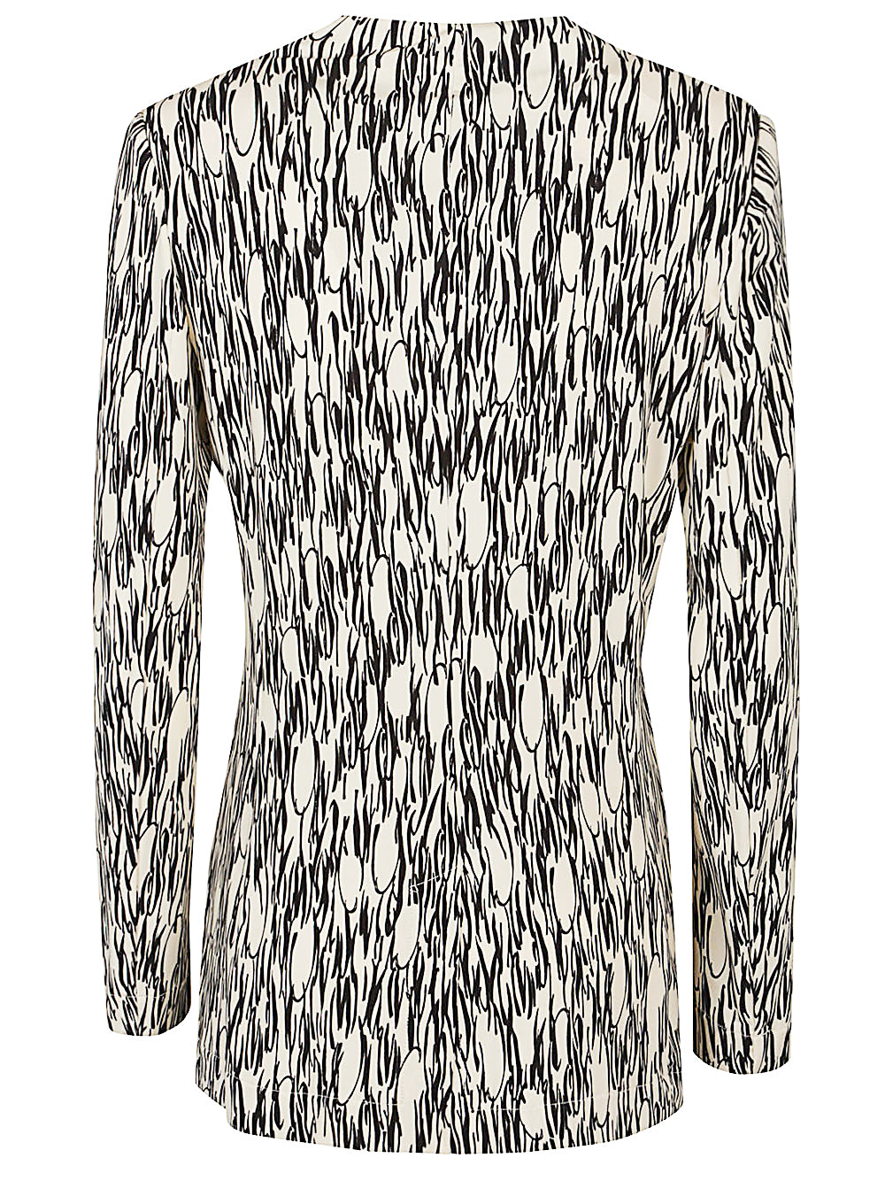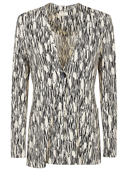 Jacket made of viscose with all-over multicolor print, V-neck, front button closure, two front patch pockets, straight hem. Printed single-breasted jacket Size and Fit - This piece fits true to size. We recommend you get your regular size. Model is 1,75m / 5ft 8in wearing size 36 (ES)