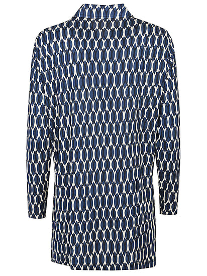 Shirt made of viscose, multicolor, polo collar, front button closure, long sleeves, side slits, straight hem, relaxed fit. Printed shirt Size and Fit - This piece fits true to size. We recommend you get your regular size. Model is 1,75m / 5ft 8in wearing size 36 (ES)