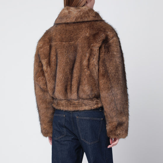 Stand Studio bomber in brown faux fur, featuring long sleeves, two side pockets, and concealed front button fastening. Size and Fit - Model wears size 36 FR Model measurements: Height: 182 cm Chest: 79 cm Waist: 62 cm Hips: 90 cm