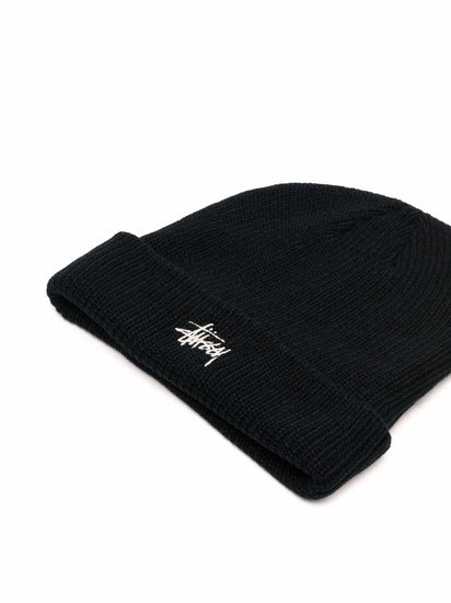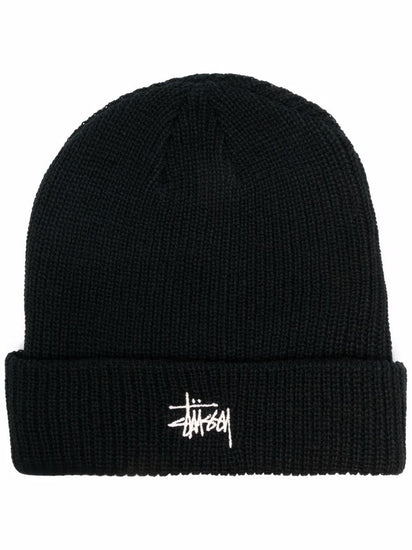 black ribbed knit embroidered logo to the front folded edge stretch-design