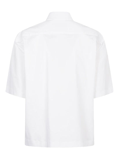 White shirt, short sleeves, jewel button closure, straight hem. Ben cotton shirt Size and Fit - This piece fits true to size. We recommend you get your regular size. Model is 1,75m / 5ft 8in wearing size S