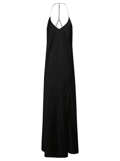 Long dress with side slit, V-neck and crossed straps on the back. Long dress Size and Fit - This piece fits true to size. We recommend you get your regular size. Model is 1,75m / 5ft 8in wearing size S