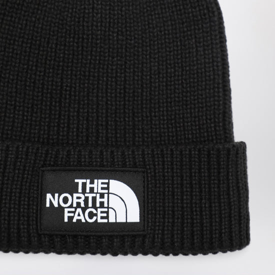 The North Face hat made of black recycled fabric, featuring a cuff with a patch with logo lettering on the front.