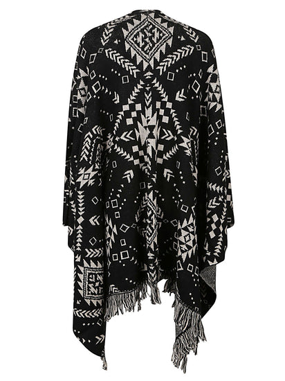 Black cardigan, with print, large, with ethnic printing. Ethnic print jacquard cardigan Size and Fit - This piece fits true to size. We recommend you get your regular size. Model is 1,75m / 5ft 8in wearing size S