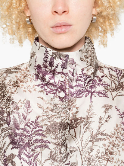 white silk floral print long sleeves button fastening high neck Printed silk shirt