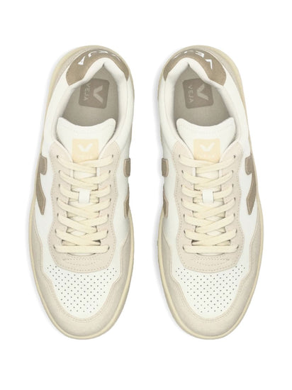 off-white leather upper suede heel tab perforated detailing V logo flat laces V-90 sneakers
