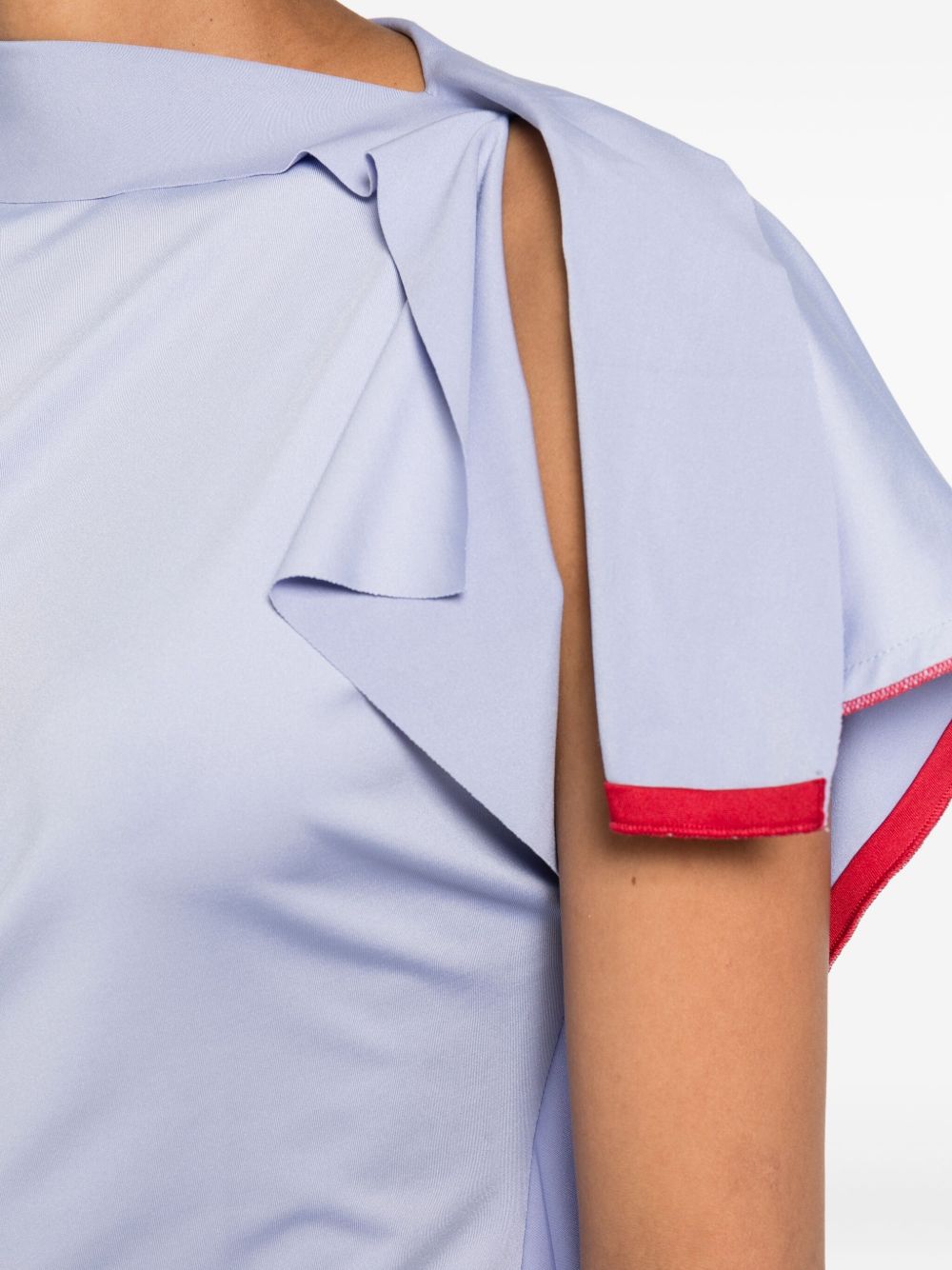 lilac draped detailing asymmetrical sleeve short sleeves gathered waist Midi dress Size and Fit - This piece fits true to size. We recommend you get your regular size. Model is 1,75m / 5ft 8in wearing size 8 (UK)