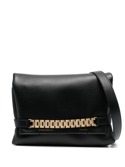 mini Chain Pouch leather clutch from VICTORIA BECKHAM featuring black, lambskin, chain-link detailing, logo stamp to the front, single top handle, foldover top with magnetic fastening and suede lining. Chain leather clutch Size and Fit - Width 10,63 in / 27 cm Height 7,87 in / 20 cm Depth 5,12 in / 13 cm Strap 7,87 in / 20 cm.