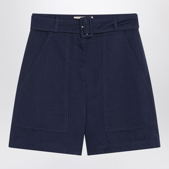 Bermuda by Max Mara Weekend in a blend of linen and cotton blue, characterized by a high waist with a matching belt, front closure with a zip and button, cargo pockets on the front and applied pockets on the back. Size and Fit - Model wears size 40 IT Model measurements: Height: 178 cm Chest: 89 cm Waist: 62 cm Hips: 88 cm