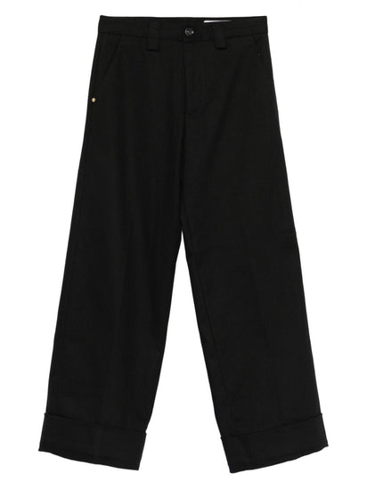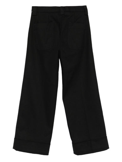 black cotton construction cuffed hems button fastening Cotton flared trousers