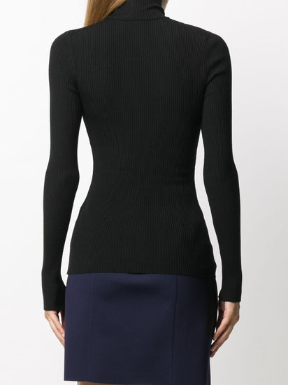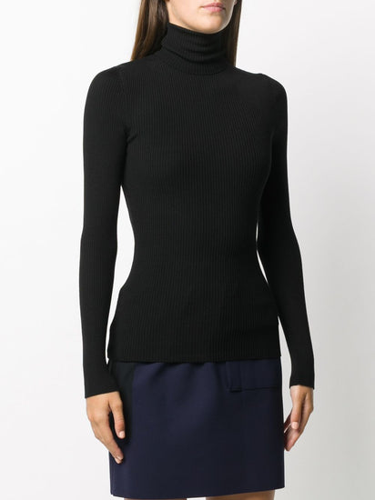 black virgin wool ribbed knit fitted silhouette roll neck long sleeves Wool turtle-neck sweater