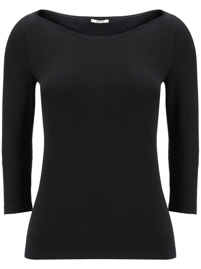black round neck long sleeves straight hem internal logo patch