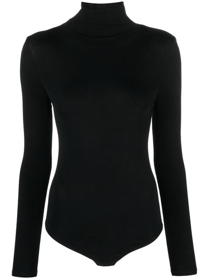 black stretch-design roll neck long sleeves Just a reminder that this piece must be tried on over your own garments. Colorado cotton blend bodysuit Size and Fit - CHEST: 62.0 Centimetres. SLEEVE LENGTH: 61.0 Centimetres. HIPS: 58.0 Centimetres. LENGTH: 64.0 Centimetres. Shoulder Width: 31.0 Centimetres.