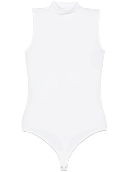 white modal blend lightweight jersey concealed press-stud fastening high neck sleeveless high cut Just a reminder that this piece must be tried on over your own garments. High-neck bodysuit Size and Fit - This piece fits true to size. We recommend you get your regular size. Model is 1,75m / 5ft 8in wearing size S