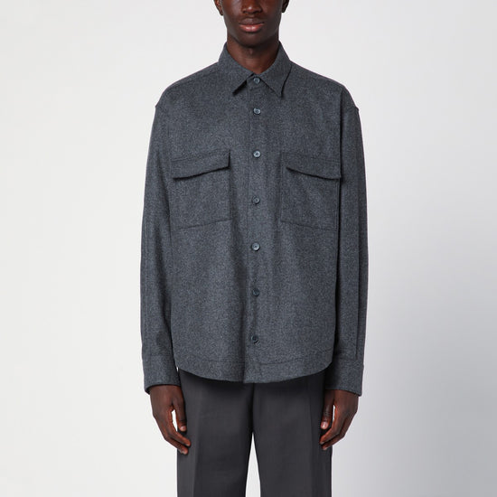 Overshirt by Xacus made of grey wool blend, featuring an Italian collar, a front button placket, flap pockets on the chest, long sleeves, button cuffs and a curved hem. Size and Fit - Model wears size L Model measurements: Height: 187 cm Chest: 102 cm Waist: 76 cm Hips: 92 cm